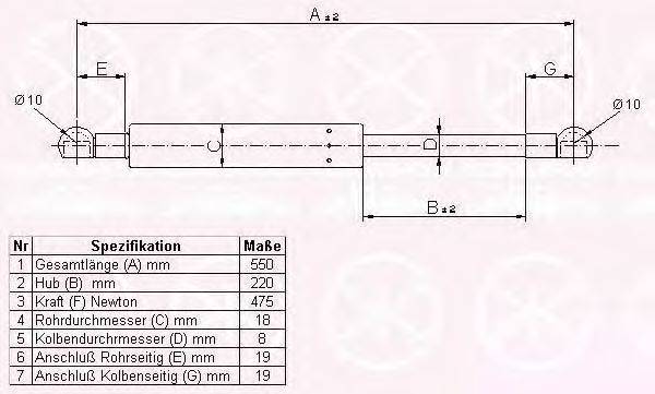 90077105 KLOKKERHOLM Газова пружина, кришка багажника